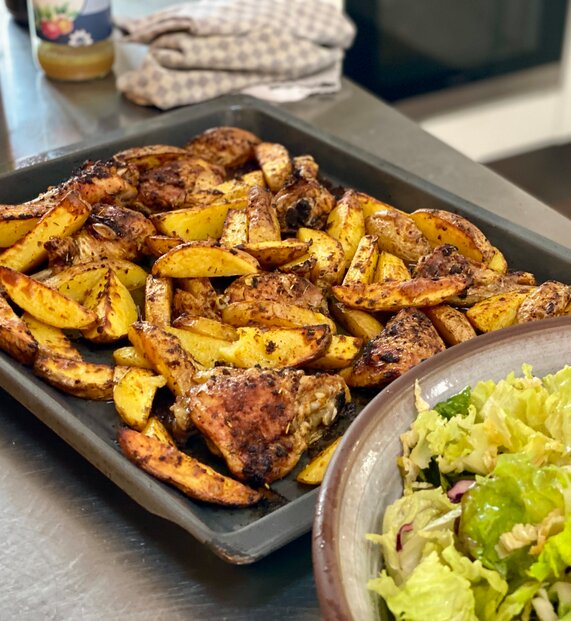 Was gibt es besseres als ein Hähnchen mit Kartoffeln - heiß und gebraten?!